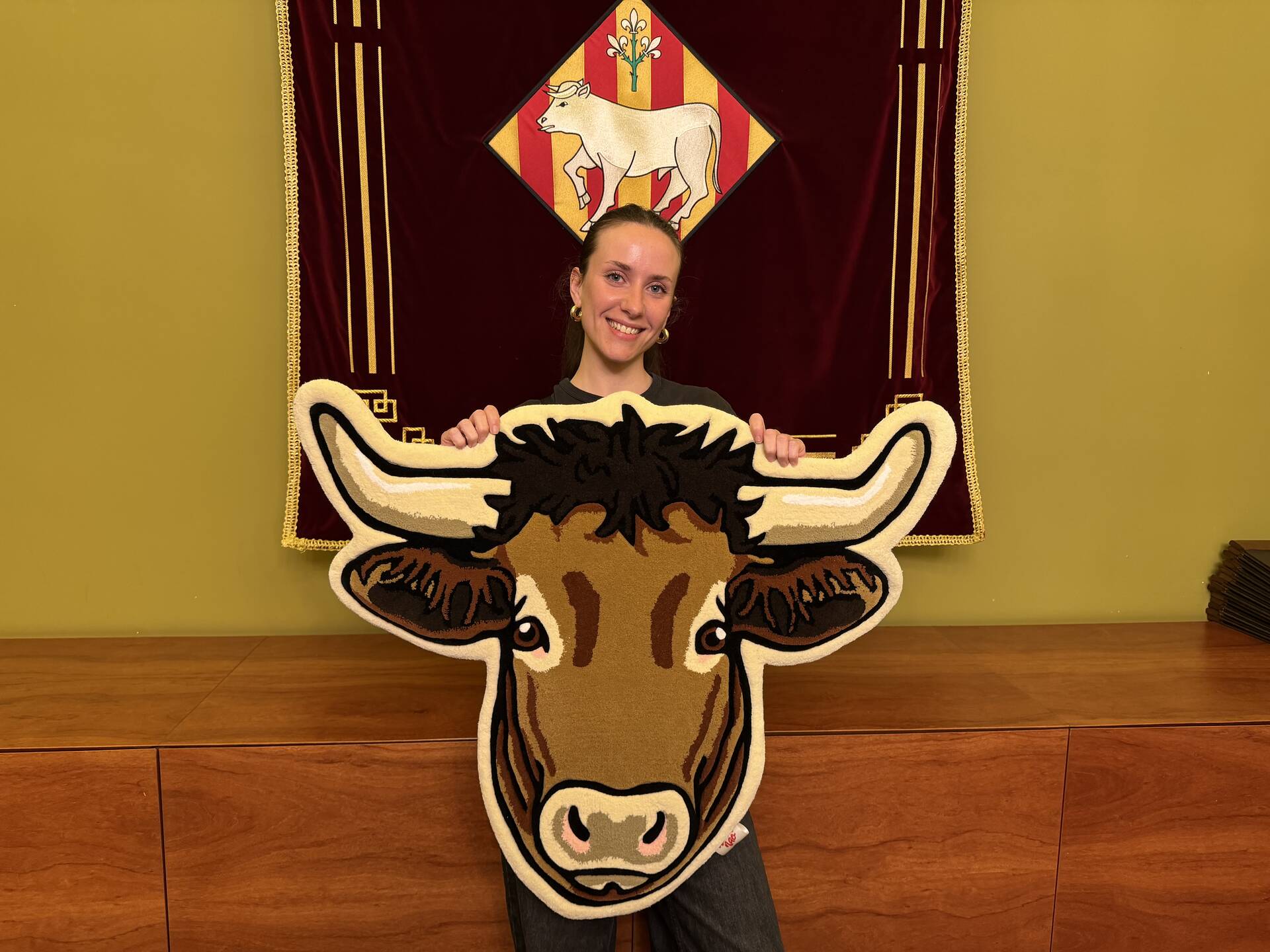 La Sala de Plens de l’Ajuntament de les Borges Blanques va acollir divendres passat la presentació de la catifa dissenyada per Delanao Studio. Es tracta d’una peça adquirida per l’Ajuntament que representa el bou de l’escut municipal, un element identitari del municipi.