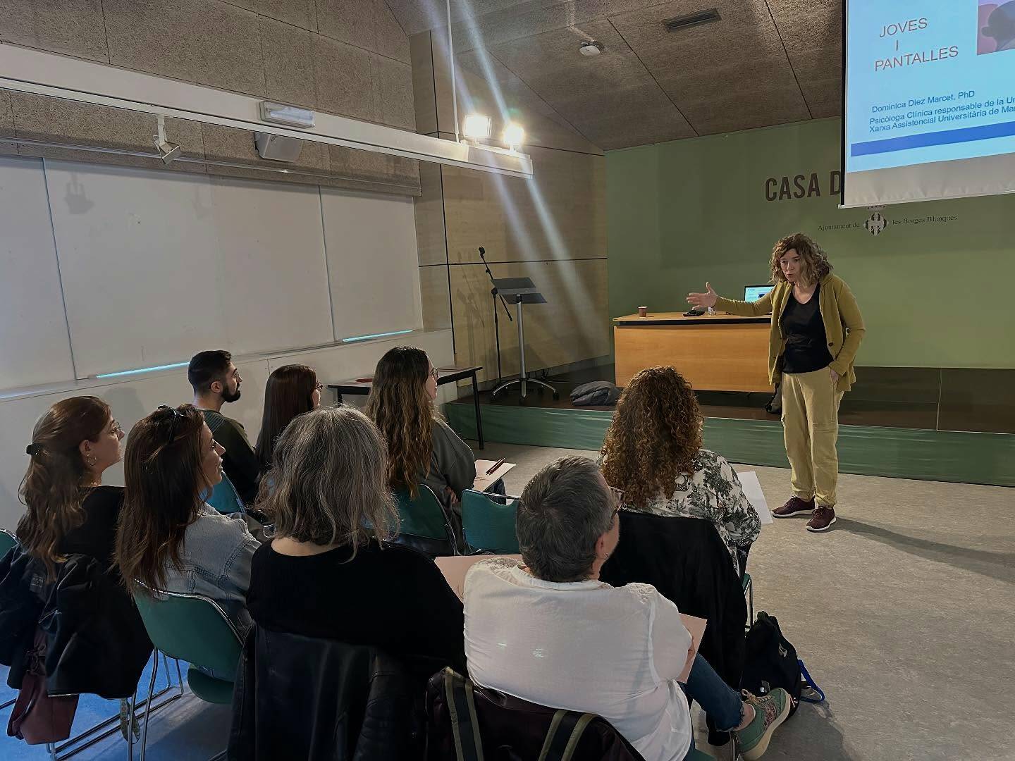 La Sala Maria Lois de les Borges Blanques va acollir la jornada “En mode avió”, organitzada per Ocell de Foc Ponent, amb la participació de la doctora Dominica Díez. L’activitat va permetre als assistents reflexionar sobre com afecten les pantalles al benestar emocional de les persones joves, en un espai obert a famílies, professionals i joves. Una proposta enriquidora per parlar de salut digital, emocions i convivència tecnològica