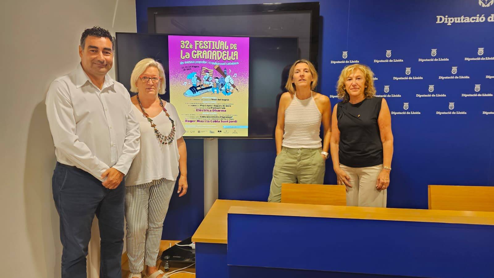 El vicepresident de la Diputació, Agustí Jiménez, l'alcaldessa de la Granadella, Elena Llauradó, i la tinent d'alcaldia, Judit Flix; van presentar ahir dilluns la 32 edició del Festival de Música Popular i Tradicional de la Granadella, que se celebrarà la Granadella, els dies 22, 23 i 24 d'agost