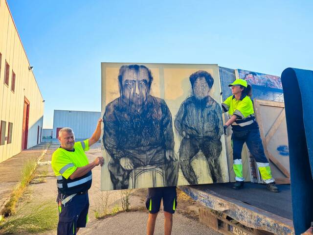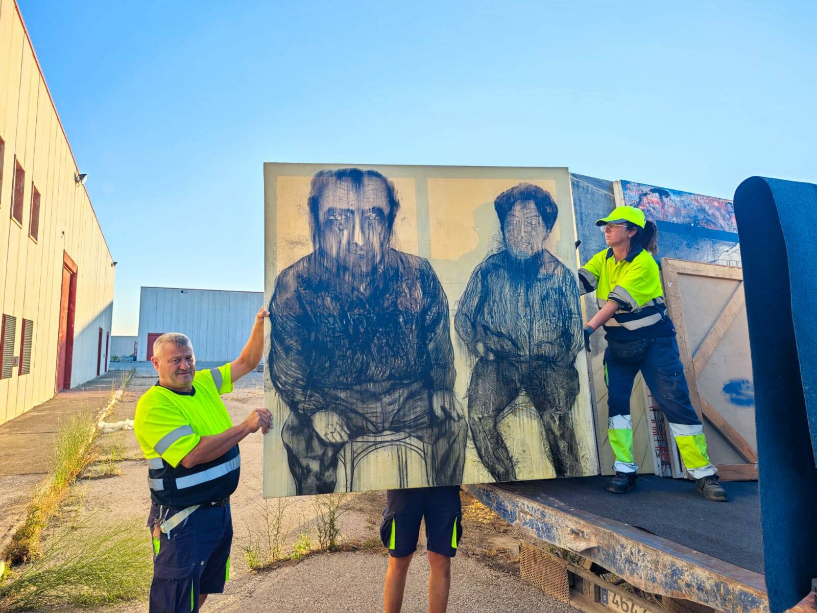 Els Serveis municipals de l'ajuntament de les Borges Blanques van col·laborar fa dues setmanes en el trasllat de diverses teles de gran format de l'artista borgenc Gregorio Iglesias Mayo. Les obres, que estaven emmagatzemades en una nau del polígon de Castellots, es van traslladar a un nou magatzem privat del municipi.