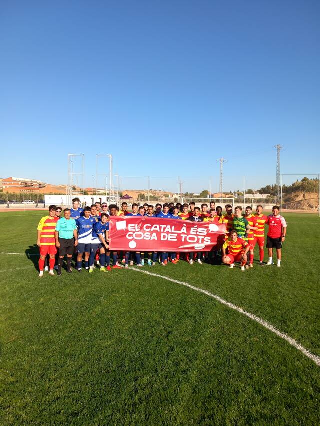 Al principi del matx, els jugadors locals i visitants van fotografiar-se plegats amb una pancarta del Correllengua d'Arbeca, que tindrà lloc el pròxim 18 d'octubre.