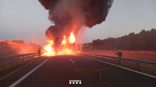 L'incendi d'un camió talla l'AP-2 a les Borges