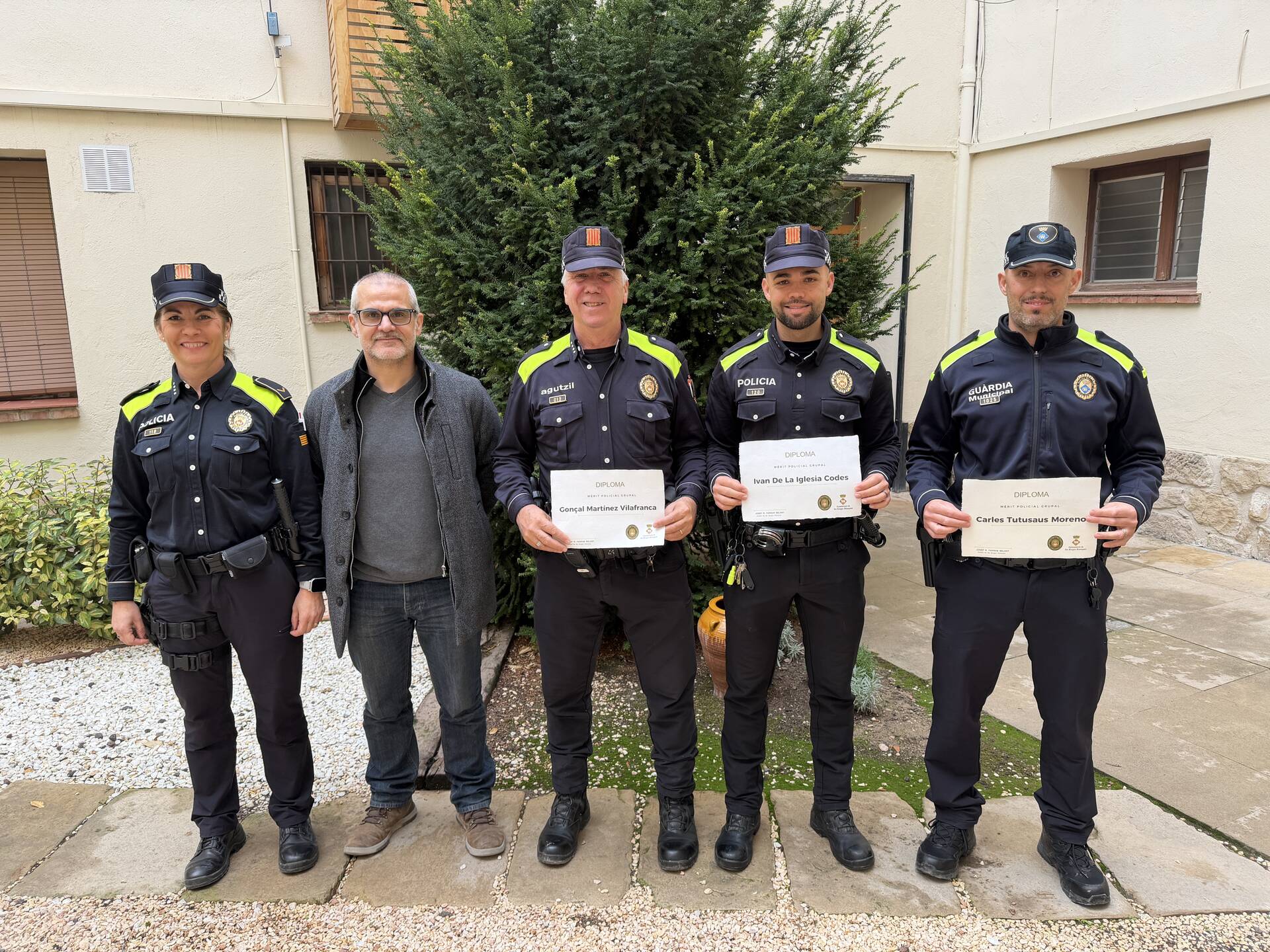 D’una banda, es van lliurar els diplomes de felicitació grupal a tres agents en reconeixement del treball realitzat. Un quart agent no va poder assistir a l’acte.